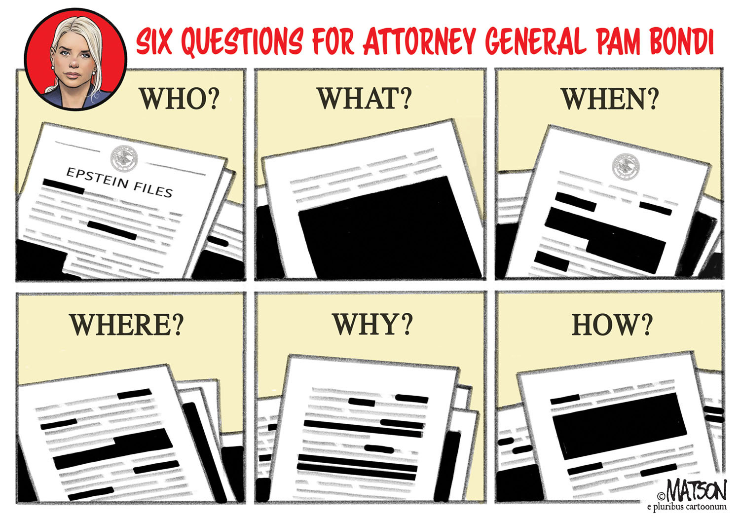 Journalism 101Attorney General Pam Bondi Couldn't Be More Incompetent If She Were A ReporterRJ MatsonFeb 11, 20263337ShareShareLeave a commente pluribus cartoonum is a reader-supported publication. To receive new posts and support my work, consider becoming a free or paid subscriber.Subscribe