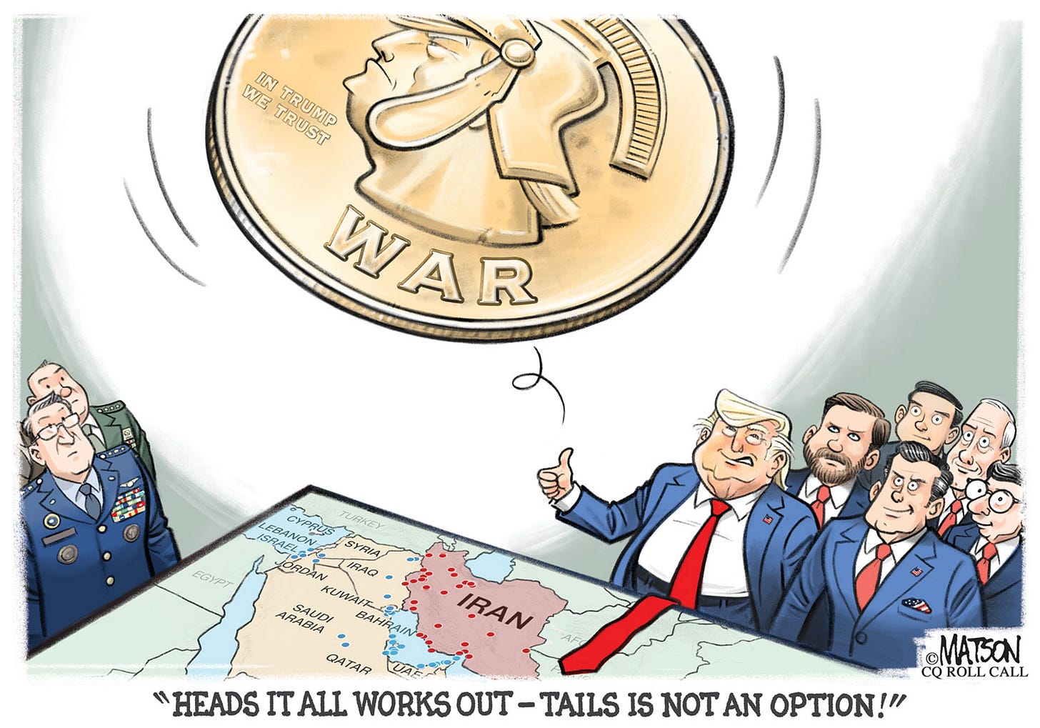 Operation Random FuryAt President Trump's Board Of War, Planning Begins With A Coin Flip.RJ MatsonMar 05, 2026315ShareShareLeave a commente pluribus cartoonum is a reader-supported publication. To receive new posts and support my work, consider becoming a free or paid subscriber.Subscribe